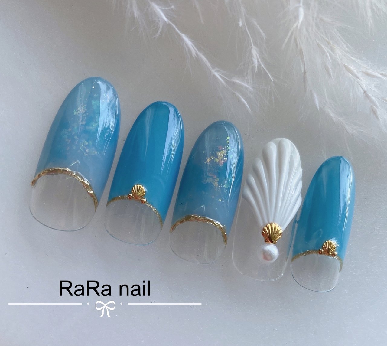夏 海 ハンド フレンチ 人魚の鱗 Rara Nailのネイルデザイン No ネイルブック
